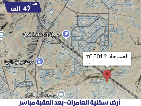 أرض العامرات خط أول بعد العقبة مباشر